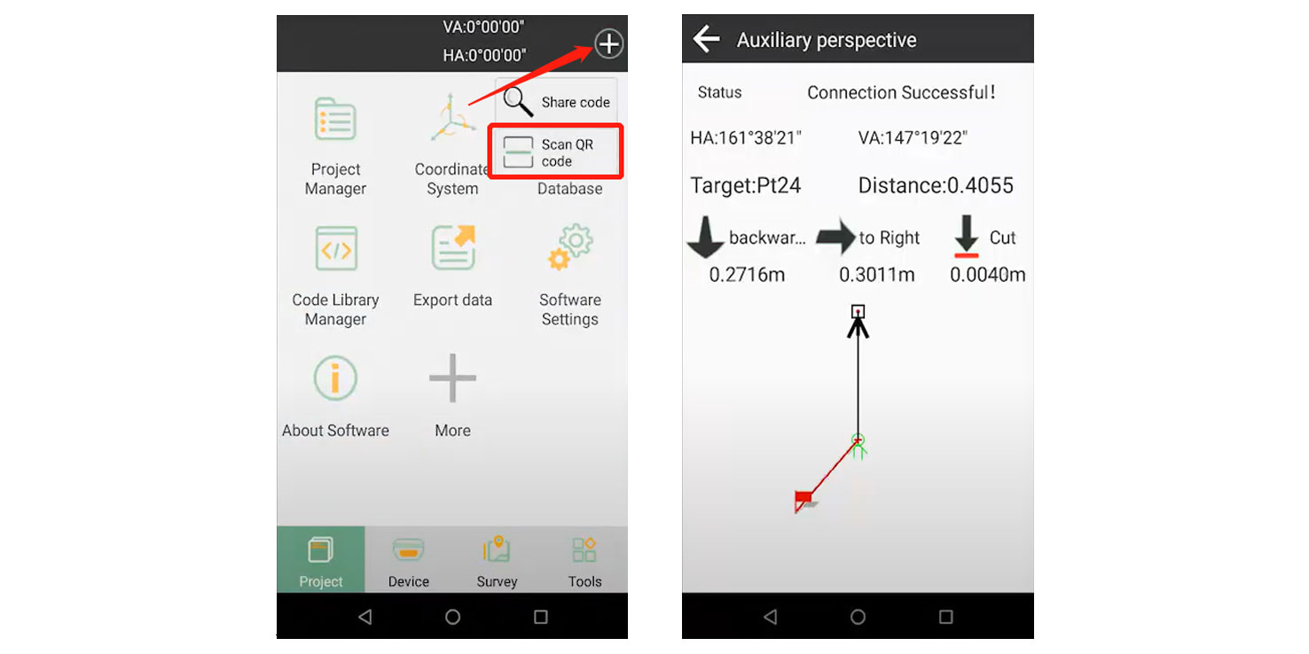 Utilice el teléfono del operador del prisma para escanear el código QR; puede obtener el aviso de replanteo en tiempo real a través de SingularPad.