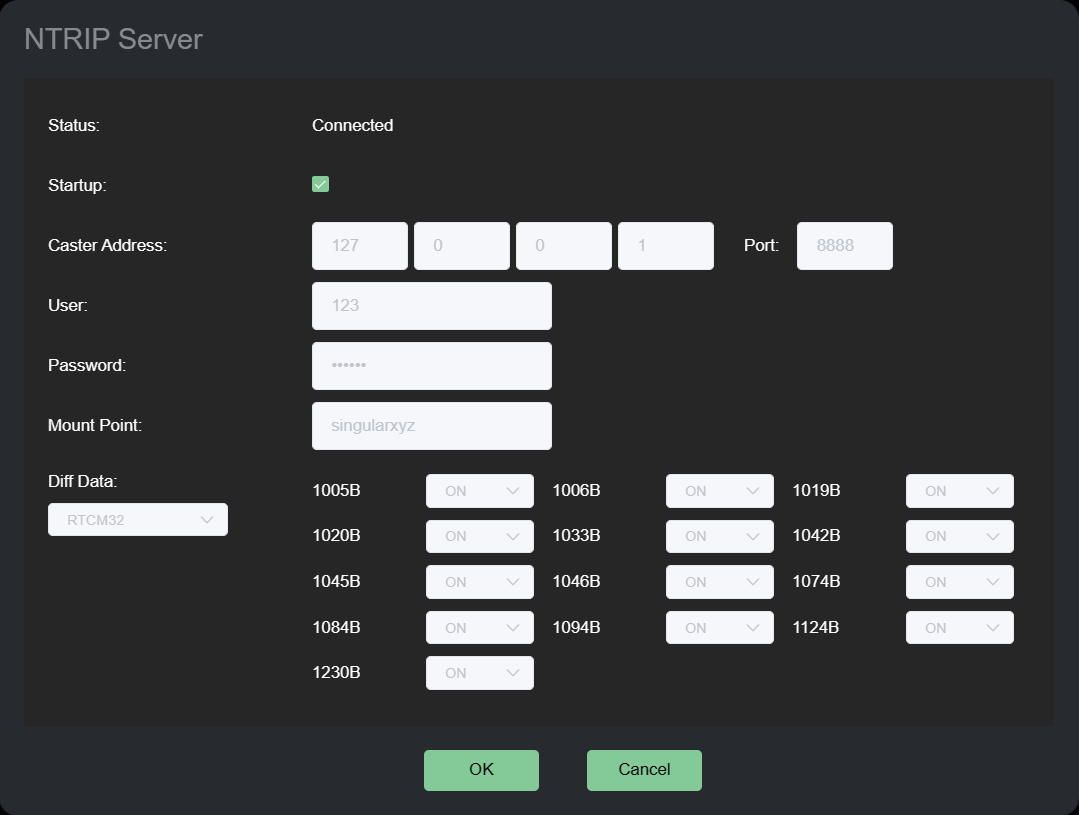 Habilite el botón Activo de Ntrip Caster, presione OK para guardar la configuración