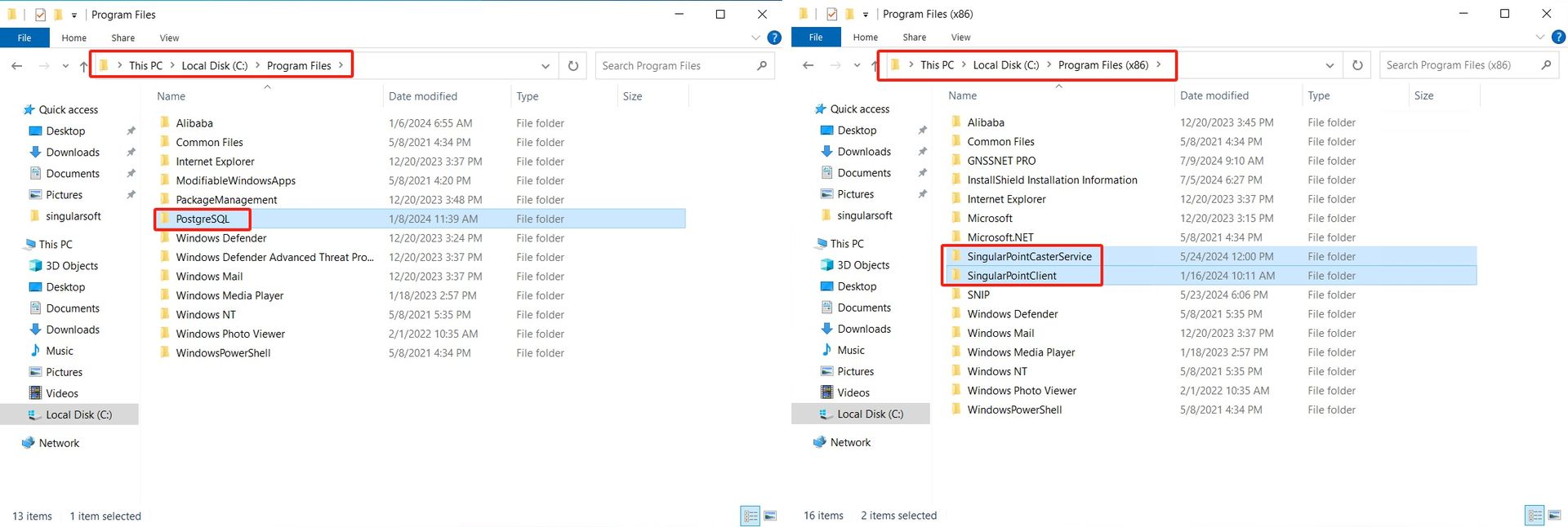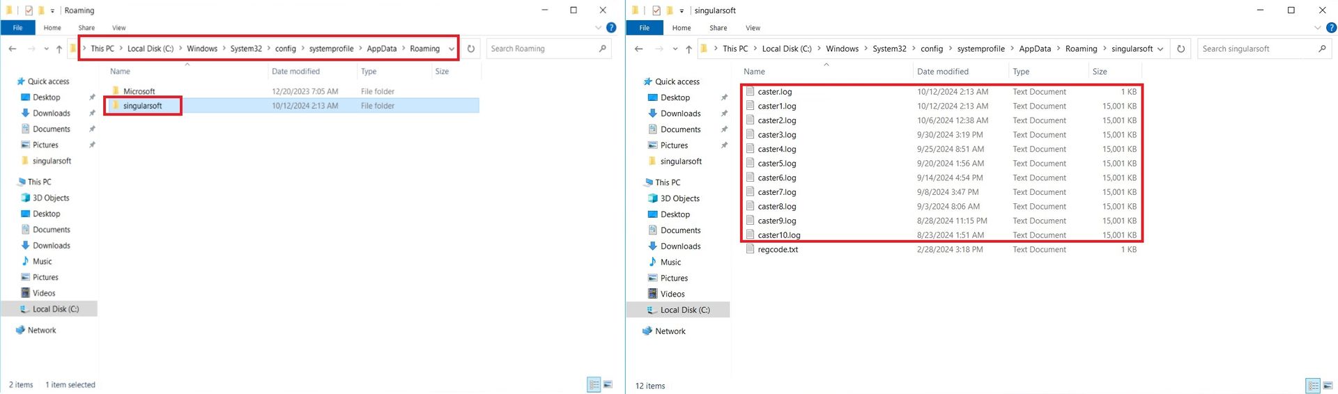 Navega hasta el Administrador de archivos de tu computadora y localiza las carpetas relacionadas con Singular Caster. Elimine todas las carpetas de archivos relevantes de la siguiente manera, lo cual es necesario para la reinstalación.