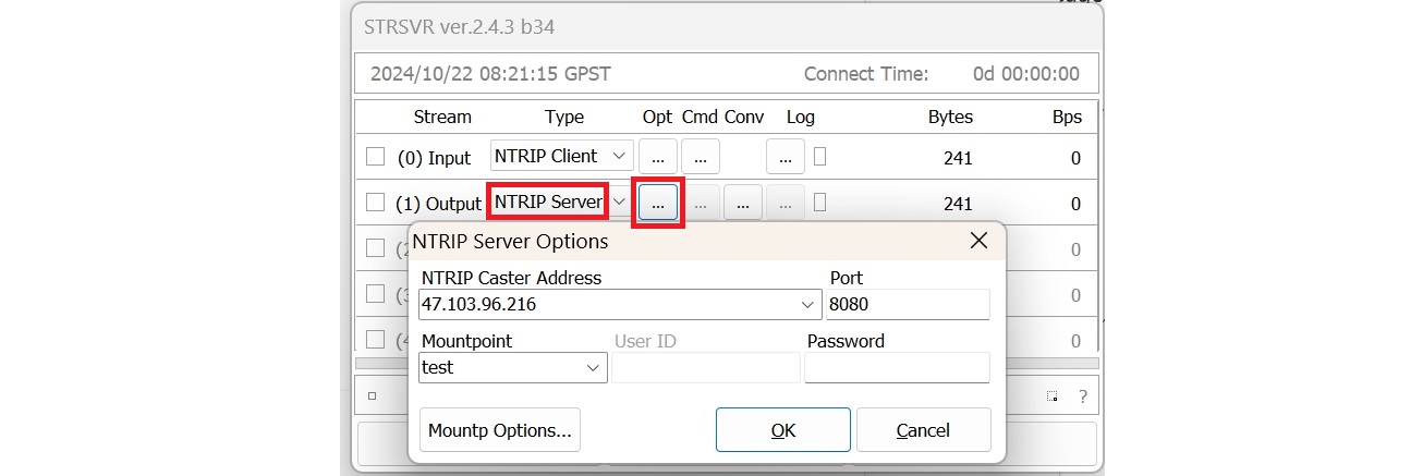 Aquí tomemos un ejemplo de entrada Ntrip Client y salida Ntrip Server para mostrarle cómo usar la herramienta STRSVR.