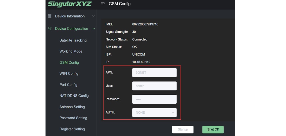 Para antenas inteligentes como la X1, puede conectarla al software SingularPad mediante Bluetooth. Al configurarlo en el modo GSM interno/Internet del dispositivo, puede configurar los ajustes de APN de manera similar para garantizar una conectividad a Internet confiable.