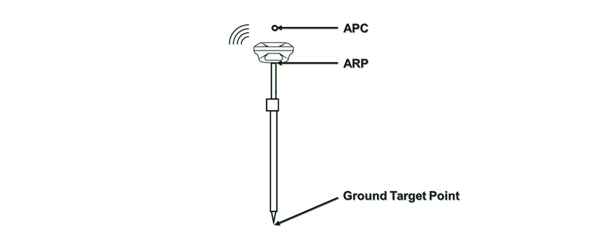 La tecnología GNSS mide la distancia desde el centro de fase de una antena transmisora de satélite hasta el centro de fase de la antena receptora. Las coordenadas obtenidas por el receptor representan las coordenadas del centro de fase de la antena del receptor. Sin embargo, estas coordenadas no son necesariamente el punto objetivo deseado por el topógrafo. Para lograr esto, es necesario configurar los parámetros de altura de la antena y altura de la varilla durante la medición.