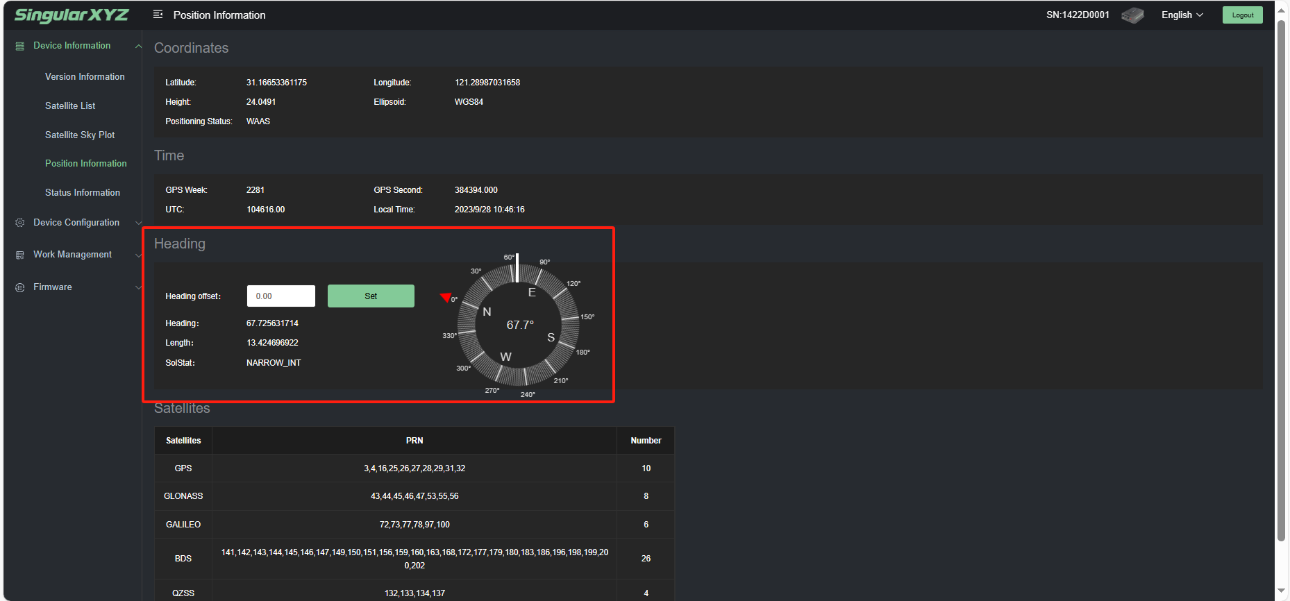el sistema SV100 DUAL ofrece una solución perfecta para obtener información de rumbo precisa. Simplemente conecte las dos antenas al receptor SV100 y acceda a la información de rumbo a través de la intuitiva WebUI. Durante las etapas iniciales, el ángulo de rumbo puede presentar ligeras fluctuaciones. Sin embargo, a medida que pasa el tiempo y el sistema se estabiliza, el ángulo de rumbo converge a un valor consistente y confiable.