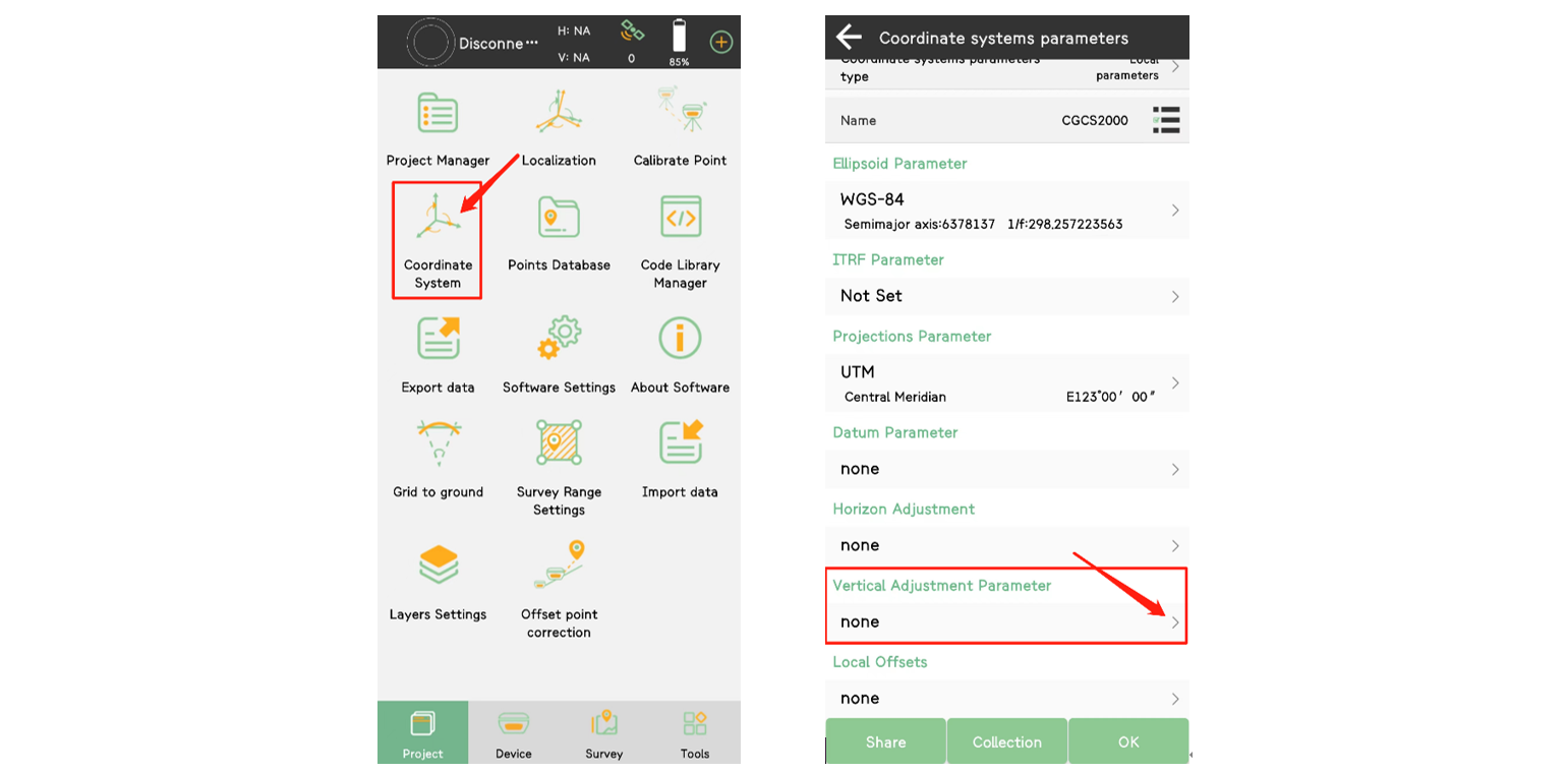 Si ya ha iniciado un proyecto, vaya a Proyecto >> Sistema de coordenadas y luego importe el archivo del modelo de geoide.