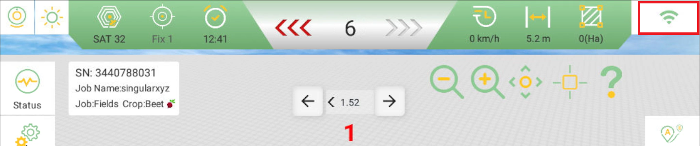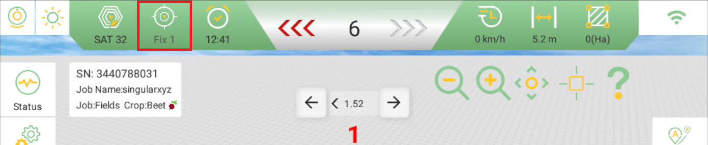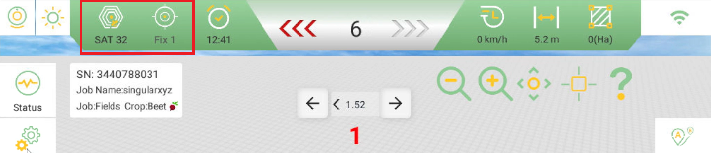 En vista de cielo abierto, el estado muestra SAT: 0, estado RTK: NoGPS