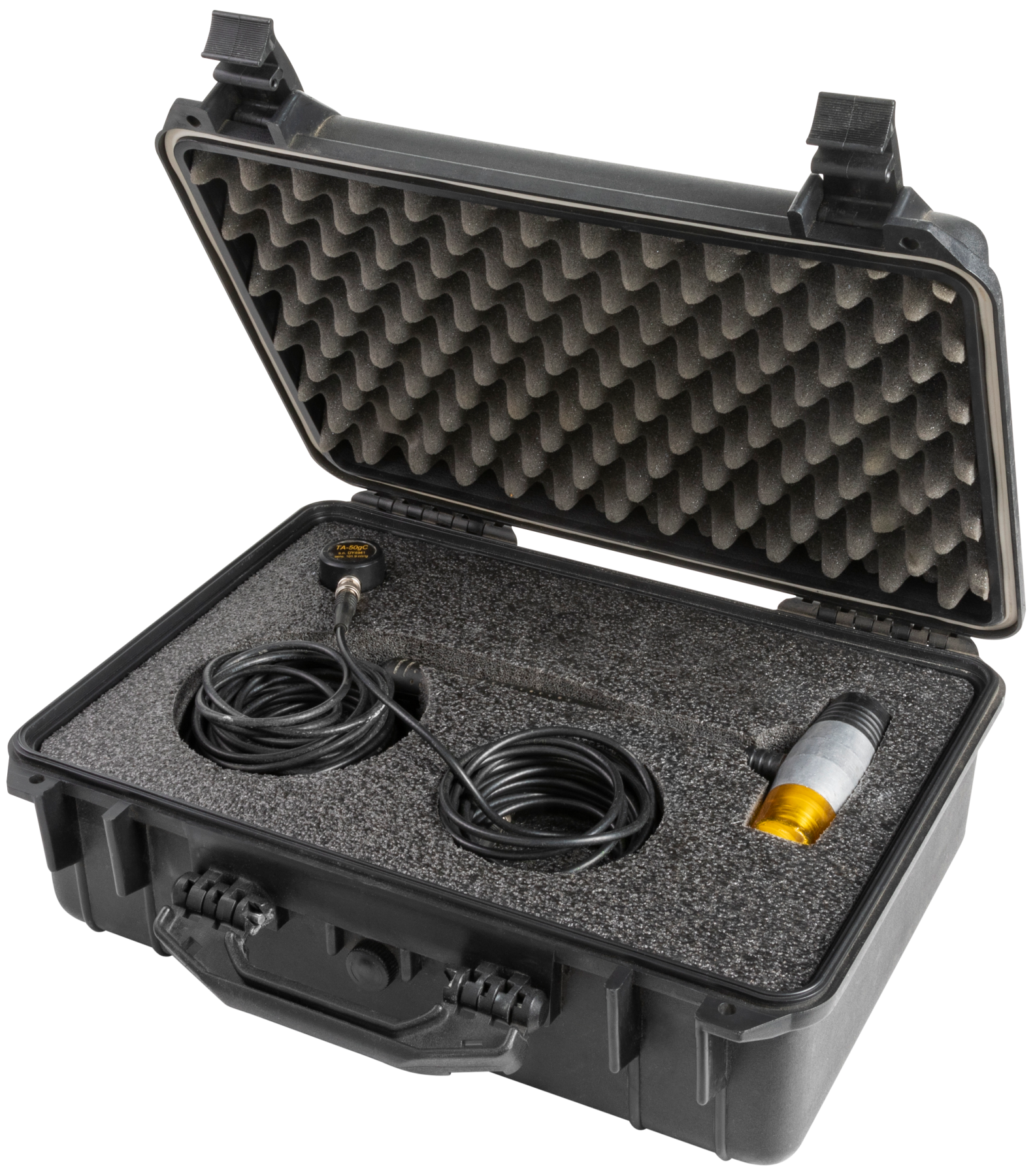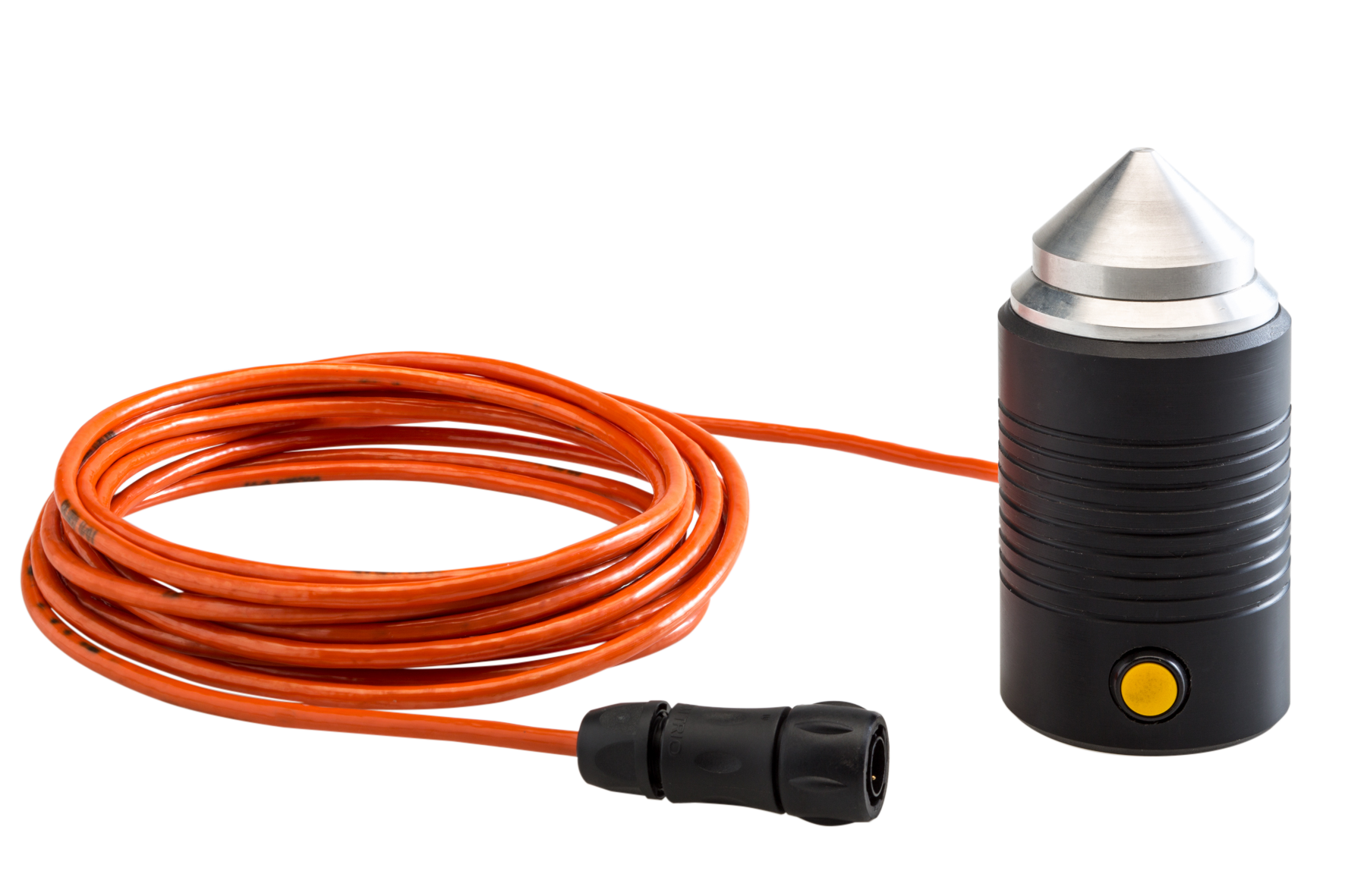 El sistema All-in-One es capaz de medir el tiempo de propagación de las ondas de presión (P) con alta precisión, y para el control de calidad, la forma de onda real de una señal se muestra en la pantalla de una tableta conectada a través de Wi-Fi.