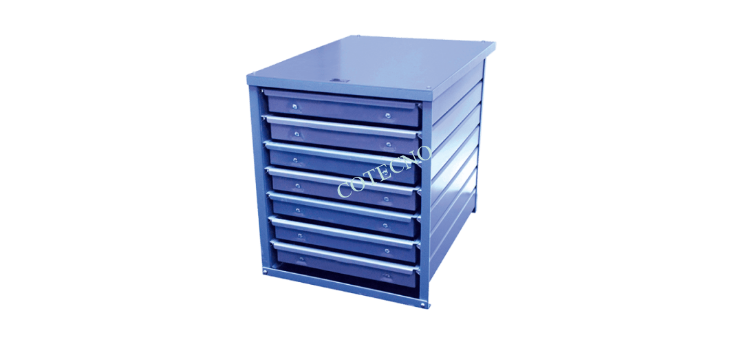Las secciones robustas de acero esmaltado de 24 pulgadas (610 mm) se ajustan en la parte superior o inferior de la mayoría de los bancos de laboratorio y se pueden atornillar para el apilamiento.