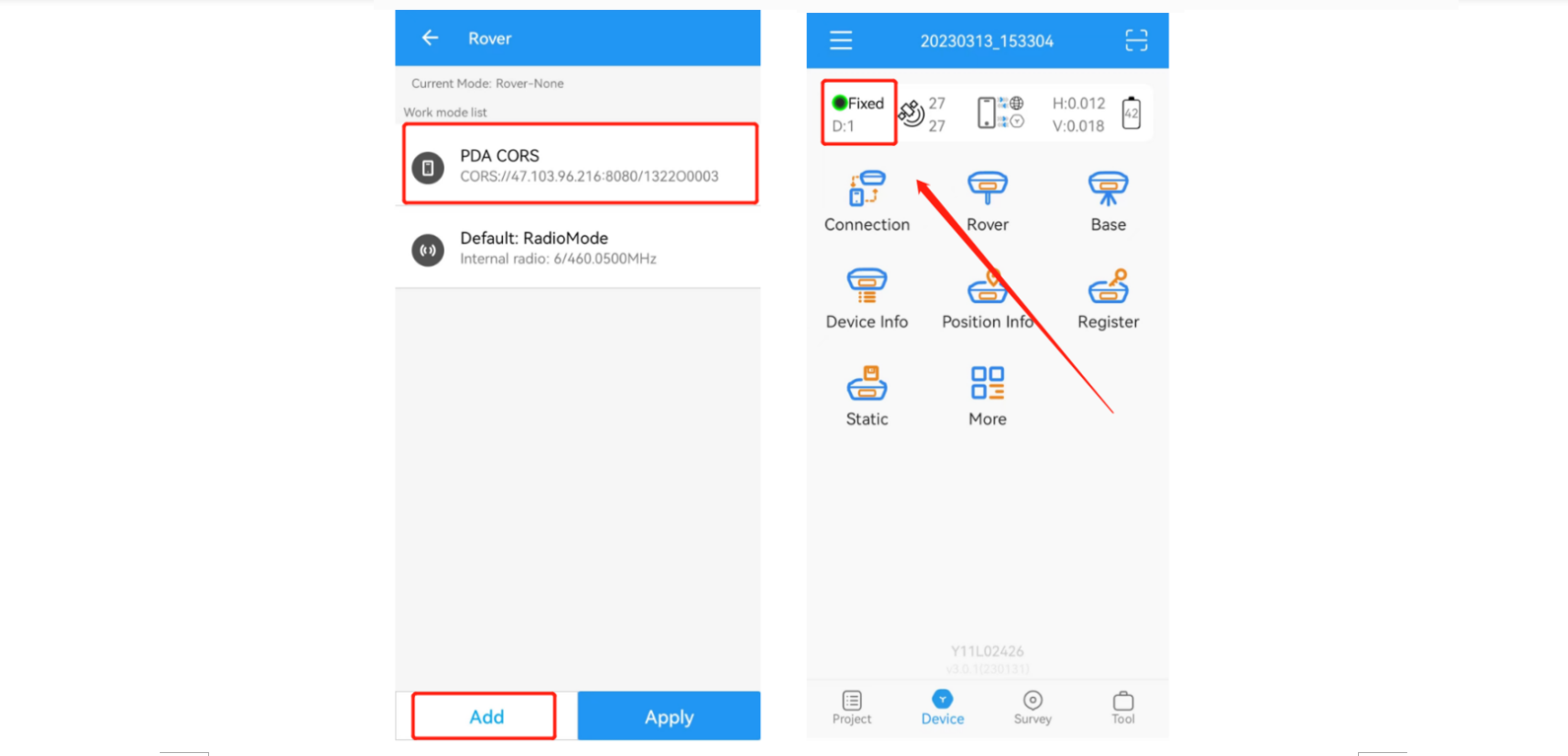 Abra SingularSurv y conéctese con Y1. Haga clic en Rover y cree un nuevo modo de trabajo, arreglándolo. Aquí use PDA CORS como ejemplo.
