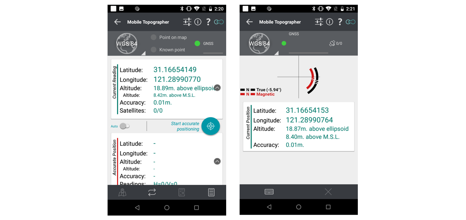 Abra Mobile Topographer u otro software, ahora obtendrá información de coordenadas de su dispositivo RTK.