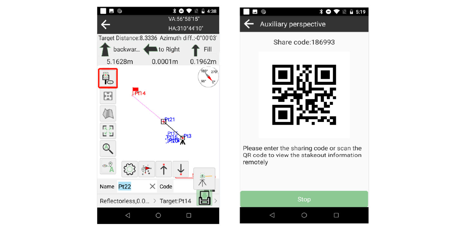 Teniendo en cuenta el complejo proceso del replanteo tradicional de estaciones totales, el equipo técnico ha agregado la función de compartir posición de replanteo en el software de campo SingularPad. El observador de la estación total puede compartir la posición de replanteo en tiempo real con el operador del prisma a través de SingularPad y luego realizar un replanteo sencillo según las indicaciones del software.