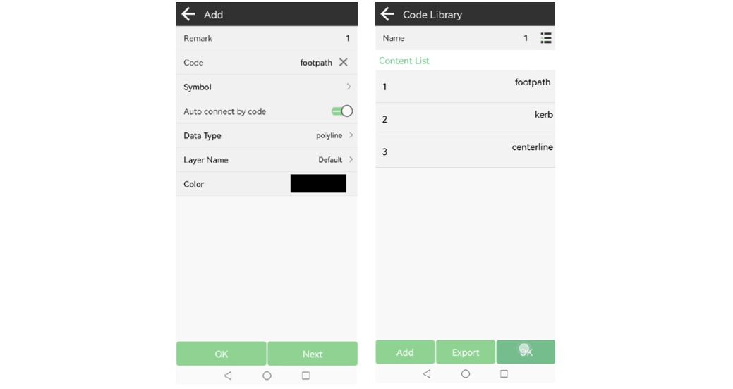 Nota: La acera, el sendero y la línea central de la carretera son todos elementos lineales. Por lo tanto, debe seleccionar el tipo como polilínea en el momento de la creación y luego crear los tres códigos.
