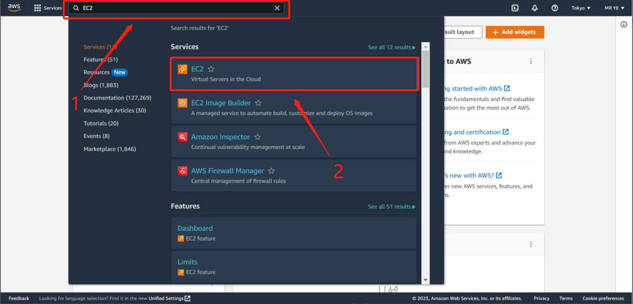 Paso 3: después de iniciar sesión, busque el módulo EC2 en la barra de búsqueda.