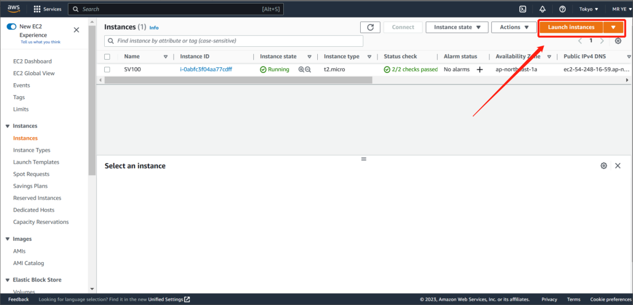 Paso 1: haga clic en la esquina superior derecha para crear la instancia