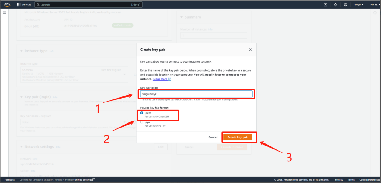 Atención: Una vez completada la creación, se generará un archivo del par de claves. Recuerde su ubicación de almacenamiento y este archivo se utilizará más adelante.