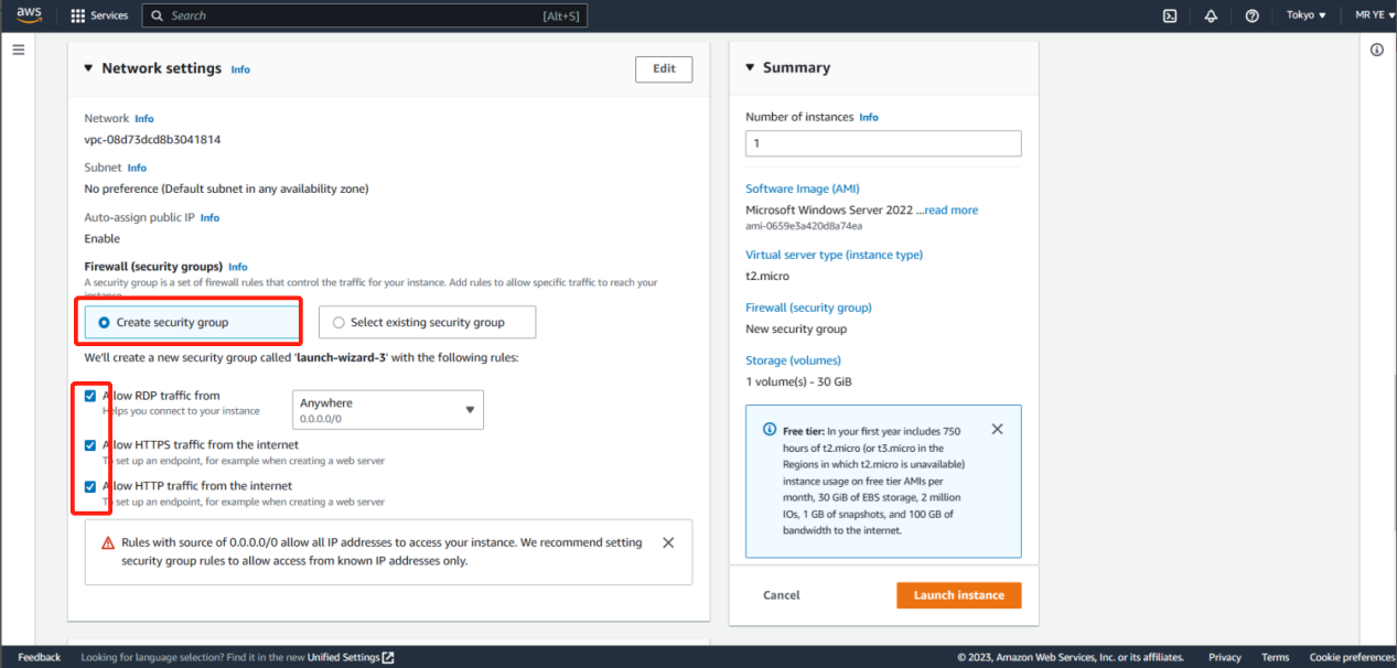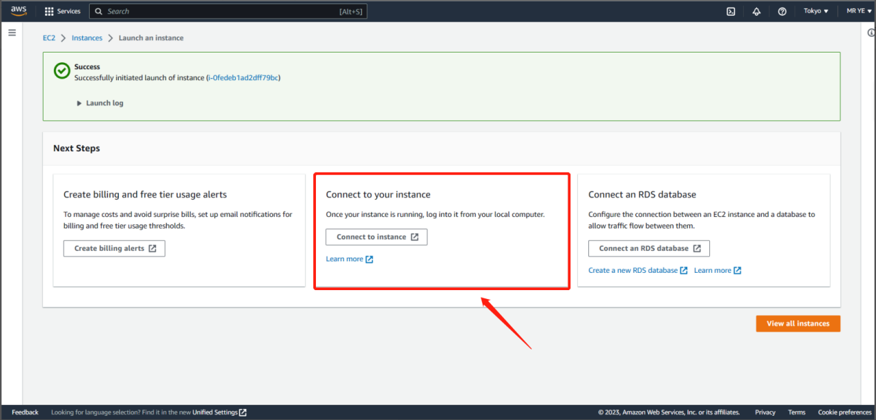 Paso 7: seleccione la conexión a su instancia después de que el lanzamiento sea exitoso.