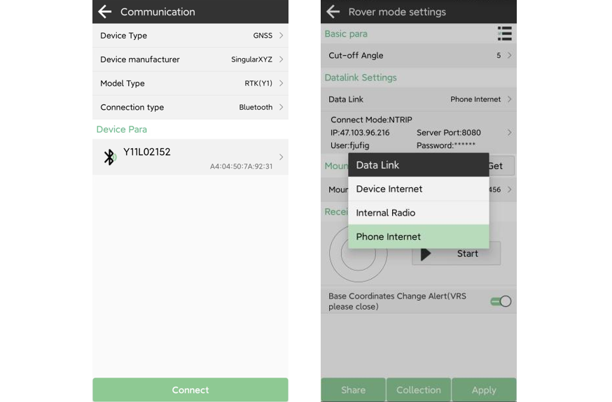 Luego, los resultados del posicionamiento Y1 RTK se compartirán con el servicio de ubicación de Android. Puede elegir cualquier software SIG y utilizar el modo GPS interno (GNSS) para obtener la ubicación de los resultados RTK de Y1 y realizar el trabajo de recopilación de SIG.