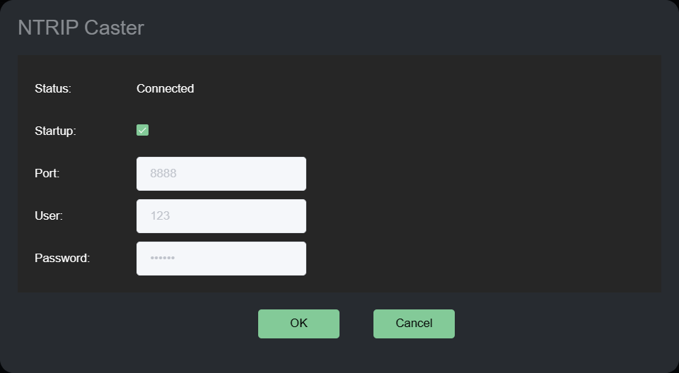 Habilite el botón Activo de Ntrip Caster, presione OK para guardar la configuración