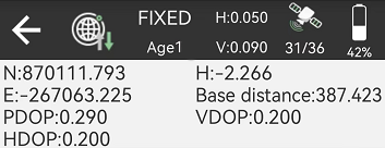 Arriba está la barra de estado de el software de topografía de campo SingularPad, que enumera PDOP, VDOP y HDOP en tiempo real para ayudar a los usuarios a juzgar la precisión actual.