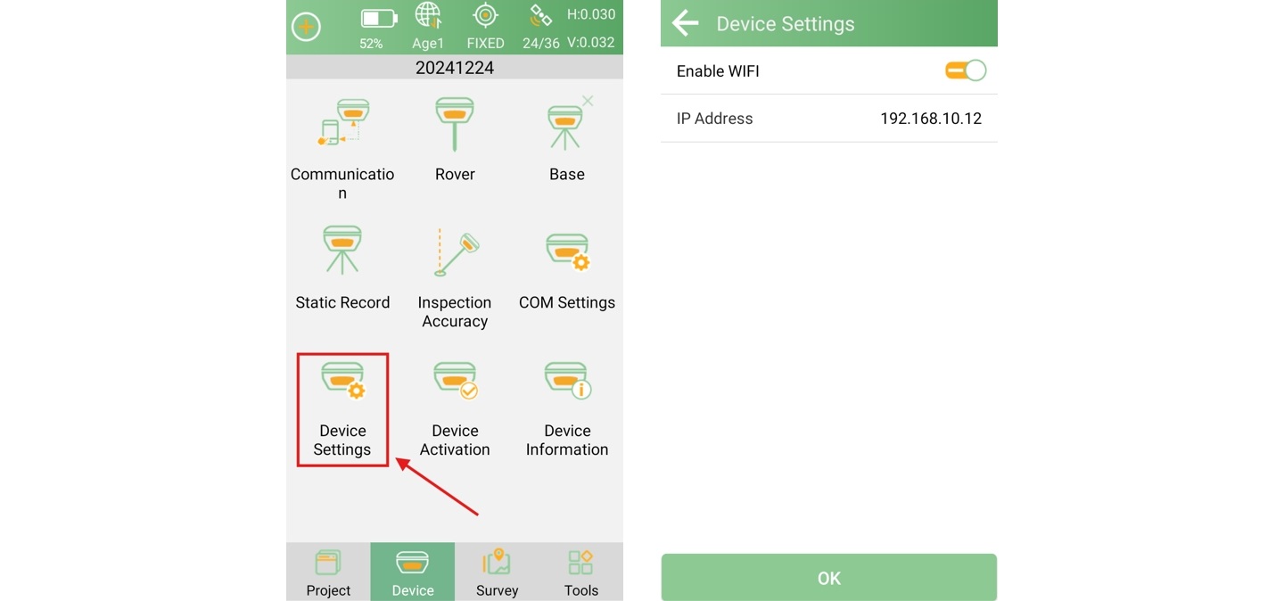 Si está utilizando el receptor GNSS Z1, puede haber ocasiones en las que necesite acceder a su página web para descargar datos estáticos, actualizar el firmware o realizar otros ajustes de configuración. Sin embargo, a diferencia de otros receptores SingularXYZ, el Bluetooth y el WiFi del Z1 no pueden funcionar simultáneamente. Esto significa que para acceder a la página web de Z1, deberás cambiar a WiFi manualmente.