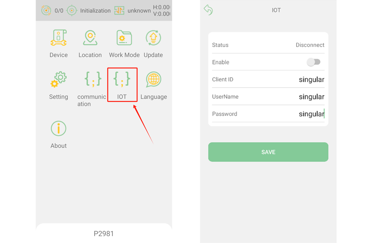 Abre la aplicación Singular Nav y ve a la sección IoT .