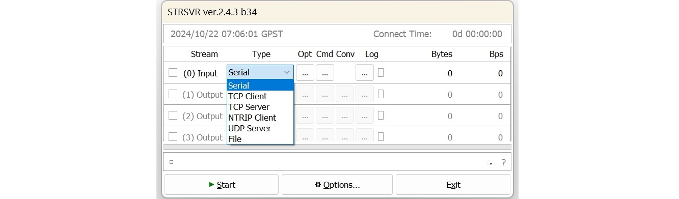 STRSVR es un software fácil de usar que admite múltiples protocolos, incluida la comunicación por puerto serie, FTP, HTTP, modo cliente/servidor TCP, transferencias de archivos y protocolo NTRIP. Con sus funciones integrales, STRSVR simplifica la configuración de servidores remotos y las operaciones de reenvío de datos, lo que facilita a los usuarios la gestión eficaz de sus flujos de datos GNSS.