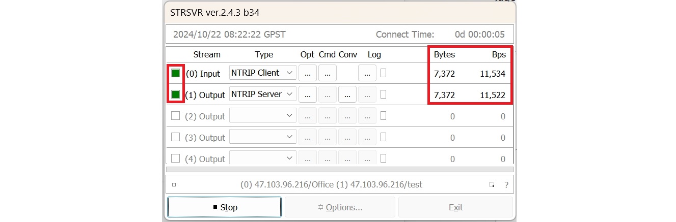 4. Haga clic en Iniciar, luego habrá transferido exitosamente los datos de corrección de su cuenta CORS al Ntrip Caster. Al verificar la salida del servidor Ntrip, también puede depurar si el servidor Ntrip Caster está disponible.