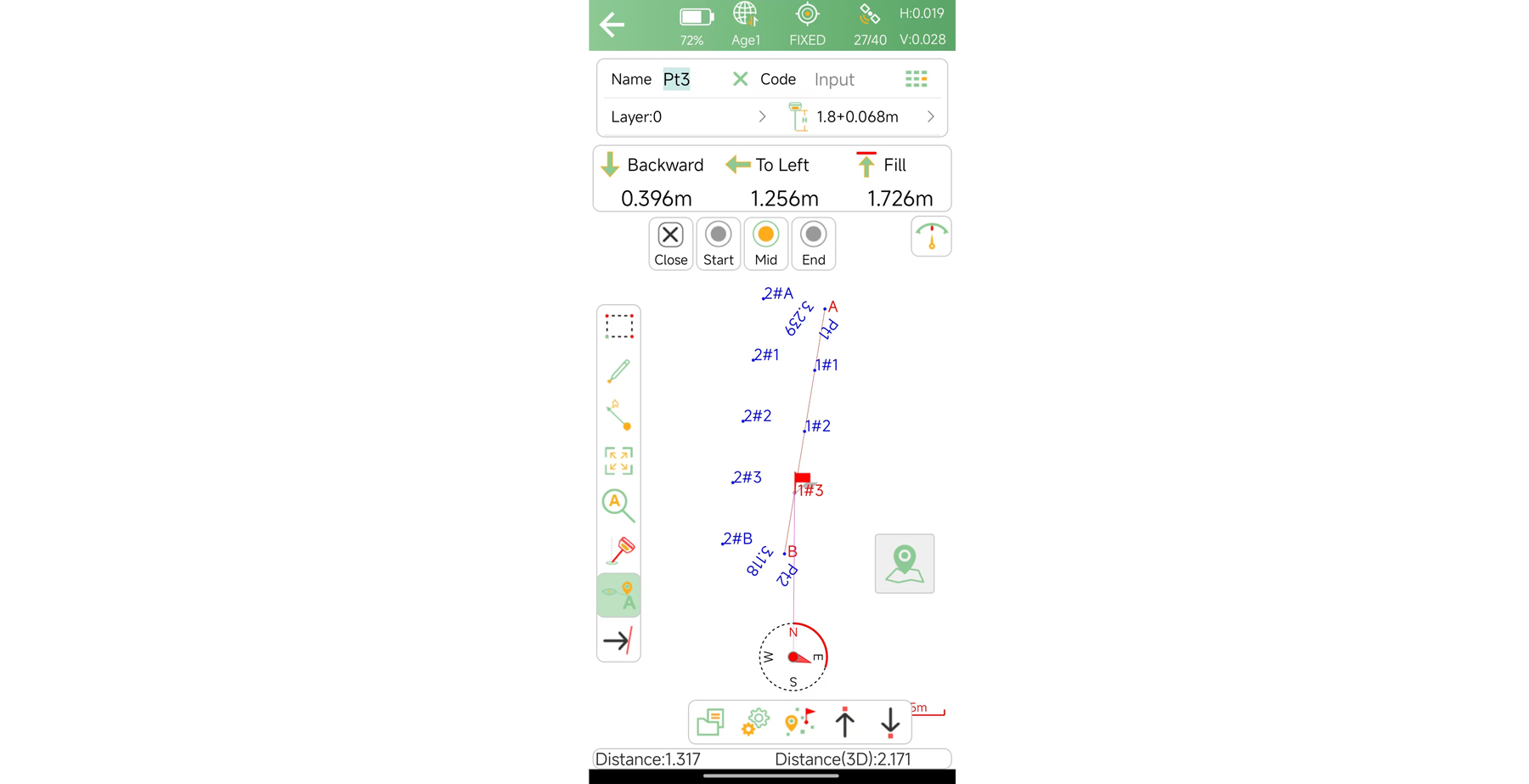 - Desigual: Se personalizan los intervalos entre cada punto.Fila única: genera puntos de replanteo en la dirección A-B.