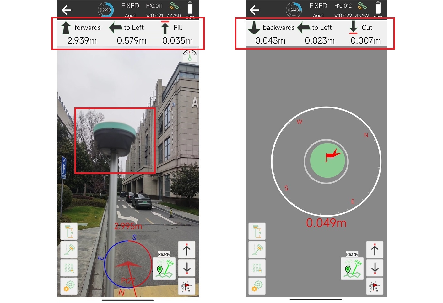 Haga que el panel frontal del receptor mire hacia adelante, luego regrese a la interfaz de replanteo y replantee de acuerdo con las indicaciones de dirección en el software SingularPad.