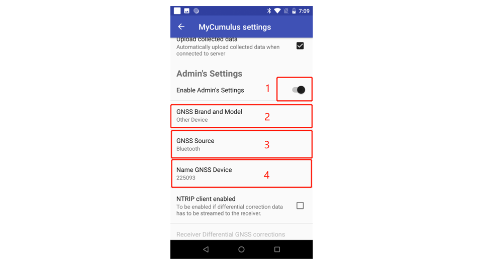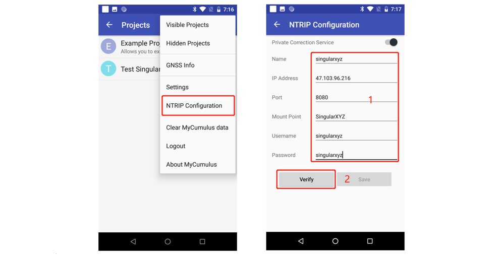En la interfaz de inicio, haga clic en Configuración NTRIP e ingrese su cuenta CORS.