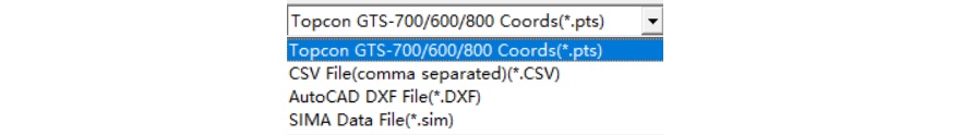 Al exportar datos directamente desde la estación total, encontrará dos tipos de datos: datos de medición y datos de coordenadas. Ambos tipos sólo admiten los formatos GTS y SSS.