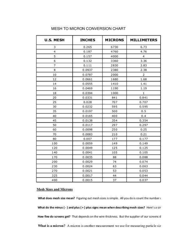 En el estándar de ISO/BS, los tejidos del alambre de los tamices de prueba son designados por el tamaño nominal de las aberturas del paño del alambre de metal. Los tamaños de abertura se miden por el espaciamiento del cable. Tamaños nominales de 1 mm y superior se expresan en Milímetros (mm); los tamaños de abertura nominales por debajo de 1 mm se expresan en Micras (μm).