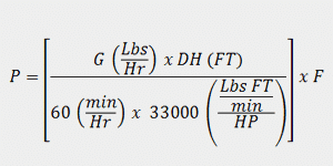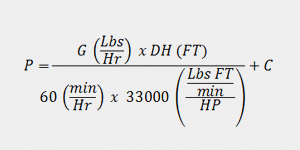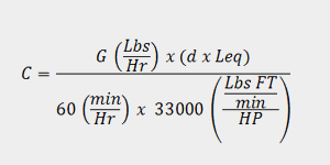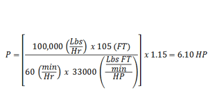 Hay muchas variaciones de los cálculos de los caballos de fuerza (HP) que se encuentran en la literatura histórica e individual del fabricante. Las siguientes fórmulas se utilizan para determinar los requisitos de potencia de un elevador de cangilones en toda la industria.