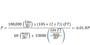 Un cliente desea transportar 100,000 libras por hora de arena a una altura de 105 pies. Determine el HP requerido.
