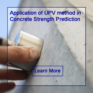 La velocidad de pulso ultrasónico (UPV) es un método eficaz de prueba no destructiva (NDT) para el control de calidad de los materiales de hormigón y la detección de daños en los componentes estructurales. Los métodos UPV se han utilizado tradicionalmente para el control de calidad de materiales, en su mayoría materiales homogéneos como metales y uniones soldadas. Con el reciente avance en la tecnología de transductores, la prueba ha sido ampliamente aceptada para probar materiales de concreto. Las pruebas ultrasónicas del hormigón son una forma eficaz de evaluar la calidad y uniformidad, y estimar la profundidad de las fisuras. El procedimiento de prueba se ha estandarizado como “Método de prueba estándar para la velocidad del pulso a través del concreto”