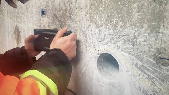 La evaluación del estado de los elementos de hormigón existentes puede requerir cierta información sobre la geometría y las dimensiones. En muchos casos, el espesor del elemento de hormigón es importante; por ejemplo, en la evaluación de cimientos existentes o muros de contención donde solo está disponible un acceso por un solo lado. La evaluación del revestimiento de hormigón (liner) en túneles o alcantarillas troncales es otro ejemplo. Tradicionalmente, esto se ha hecho tomando muestras de núcleos en puntos seleccionados de la estructura.Ensayos no destructivos de medición de espesores para hormigón