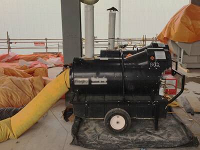 Un desafío común con el recinto calefactado es el problema de la carbonatación. El dióxido de carbono producido por algunos de los calentadores disponibles comercialmente aumenta la posibilidad de carbonatación del concreto recién colocado. Esto puede provocar la formación de una capa de hormigón débil, lo que a menudo es inaceptable. Se recomienda utilizar sistemas de calefacción que escapen al exterior del recinto.