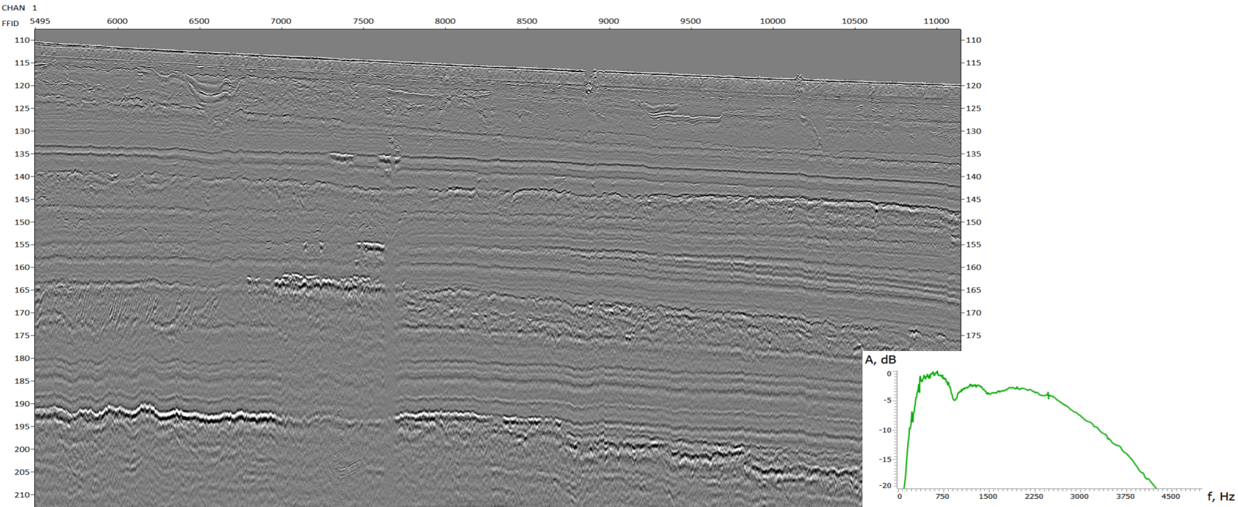 GEODEVICE developed a unique single-channel streamer design, which can be used for a wide range of water depths. The key feature is 4 mounted hydrophone groups of various lengths, registering signal independently. At the processing stage wave fields from each group can be processed separately or selectively stacked. Single hydrophone, which is typically placed at the front, allows to receive signal without a strong directivity pattern and can be used for various QC purposes. This makes single-channel ultra-high resolution setup extremely flexible in its application.