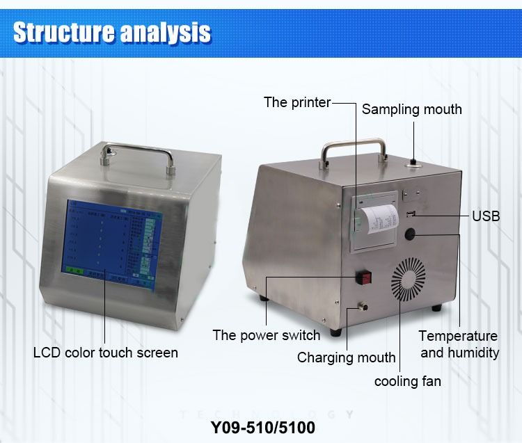 Contador de Partícula de Polvo Aerotransportado de Láser Digital. Nuestros productos son ampliamente utilizados en medicina, óptica, química, alimentos, cosméticos, e-salud, productos biológicos, aeroespacial y otros sectores.