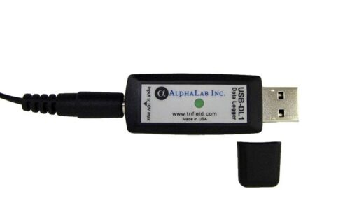 El USB-DL1 es un convertidor analógico a digital de rango dinámico extremadamente alto (24 bits) que se utiliza con una computadora a través del puerto USB. El software está incluido (se puede descargar de trifield.com). Los datos de voltaje ilimitados se pueden registrar e importar en hojas de cálculo y documentos. También aparece una ventana emergente en pantalla del voltaje de entrada. Se puede usar con otros dispositivos AlphaLab que tienen una toma de salida analógica o como un registrador de datos independiente para su propia aplicación. Tiene un conector de entrada de 1/8″ y se puede comprar con un cable que se conecta a un medidor AlphaLab o un cable con conductor estañado para conectarlo a su propia aplicación.