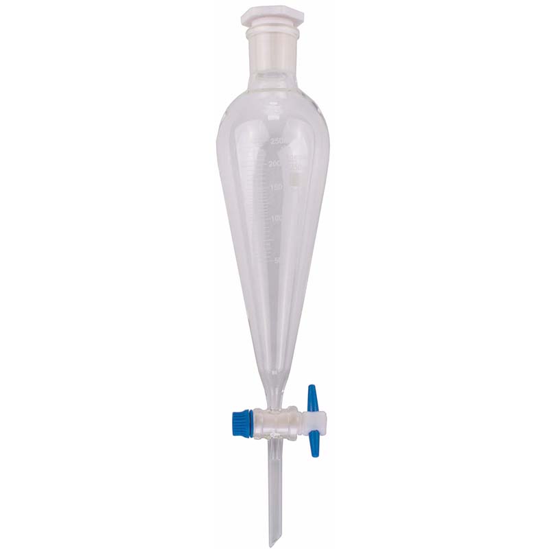 Embudo de separación según. según Squibb, 100 ml, con llave de PTFE, graduado