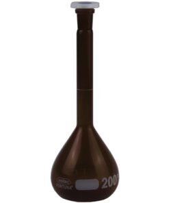 Matraz aforado de vidrio ámbar, VOLAC FORTUNA 500 ml, con TS 19/26, DE-M