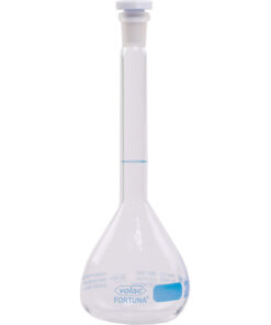 Matraz aforado de vidrio transparente, VOLAC FORTUNA 250 ml, con TS 14/23, DE-M