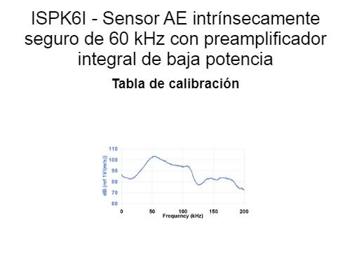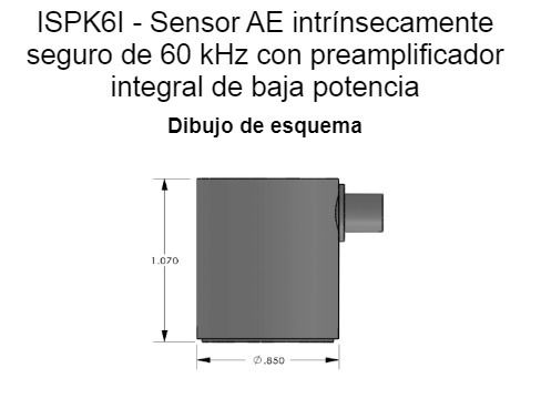 ISPK6I es un sensor de emisión acústica resonante de baja frecuencia con un preamplificador integral de ultra bajo ruido y baja potencia. Está diseñado para cumplir con los estándares de seguridad intrínseca (IS) (cuando se utiliza con nuestra interfaz AE 1281-IS) y los requisitos ambientales IP65. El preamplificador filtrado de paso de banda tiene una ganancia de 26 dB y puede conducir hasta 200 metros de cable. Este sensor representa una mejora tanto en el ruido como en el consumo de energía. Con un nivel de ruido inferior a 3 µV y un consumo de energía de tan solo 25 mW, el sensor es ideal para usar con equipos portátiles alimentados por batería. El ISPK6I presenta una cavidad de aluminio anodizado con un conector SMA que sale a un lado. El preamplificador cuenta con una función de prueba automática del sensor (Tone Burst AST) a través de la cual el sensor se puede usar como pulsador y receptor.