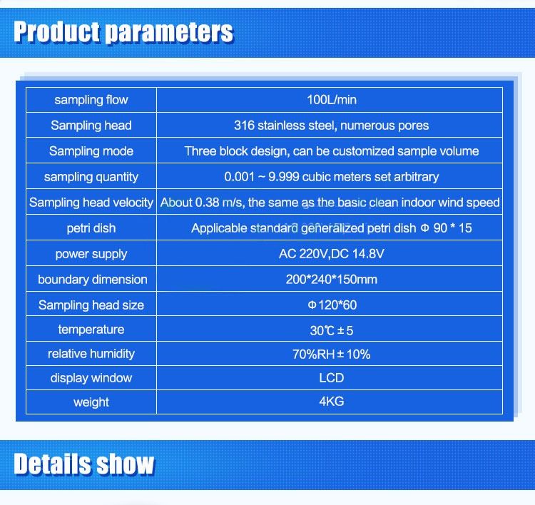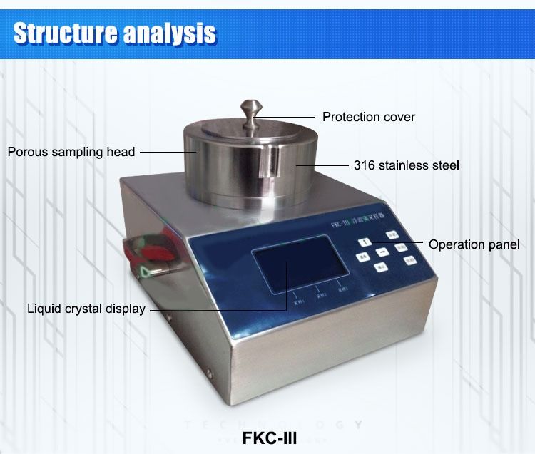 Muestreador de aire biológico de alta efectividad con pantalla digital El muestreador de aire biológico FKC-III es un eficiente colector de succión micro poroso. Se basa en un diseño de muestreo isocinético, el muestreo recoge directamente la boca de la cabeza, la velocidad del viento y el viento permanecen básicamente en la misma sala limpia, la sala limpia refleja con precisión la concentración de microorganismos. Muestreo, con la velocidad del aire a través del poroso.