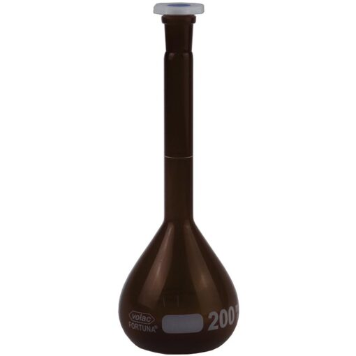 Matraz aforado de vidrio ámbar, VOLAC FORTUNA 25 ml, con TS 10/19, DE-M