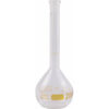 Descripción: Matraz aforado de vidrio transparente.
