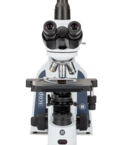El microscopio iScope también se pueden suministrar con un sistema de cabezal dual frontal. El cabezal principal es de tipo trinocular, de diseño Siedentopf e inclinado 30º, con oculares EWF 10x/22 mm y dispone de un puntero LED que se puede desplazar sobre el campo de visión y se observa de manera simultánea en los dos cabezales. El cabezal secundario es de tipo binocular, de diseño Siedentopf e inclinado 30º con oculares EWF10x/20 mm