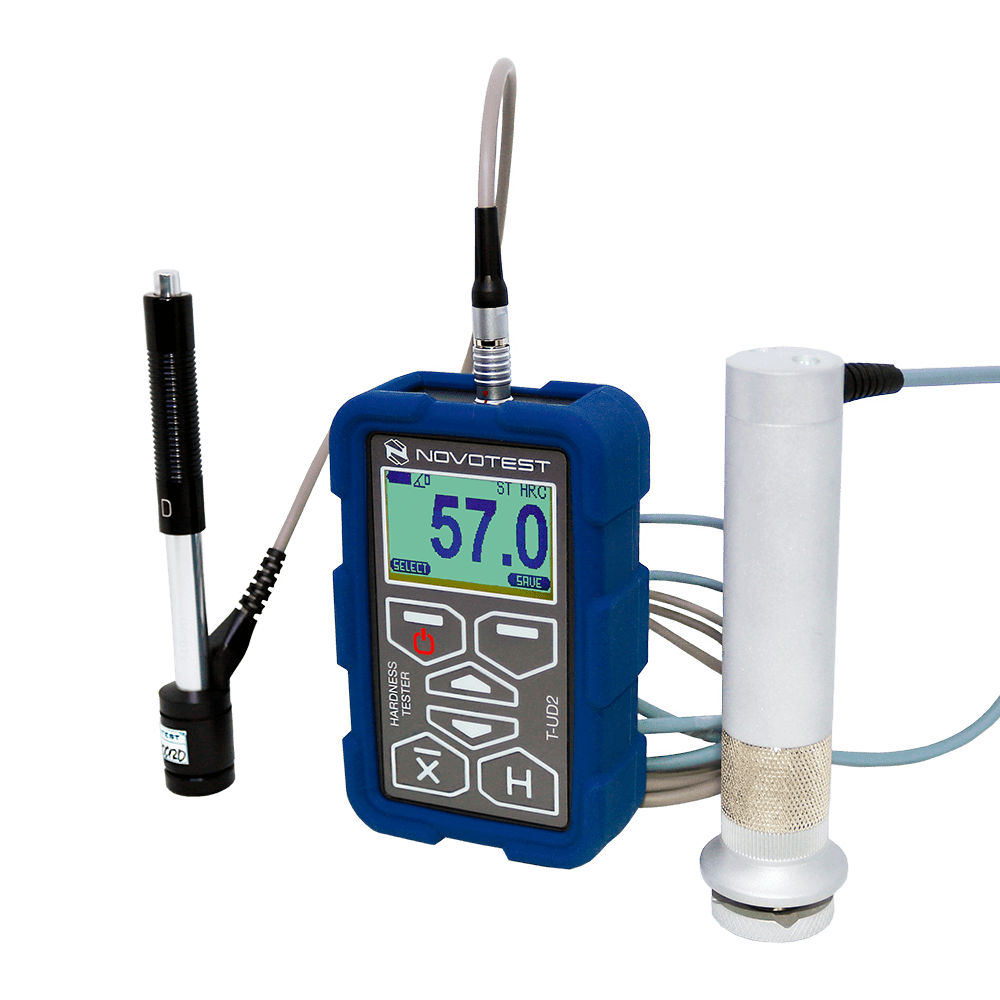 El Probador de dureza combinado NOVOTEST T-UD2 combina las ventajas de dos métodos: UСI (ASTM A1038) y Leeb (ASTM A956), lo que permite resolver casi cualquier tarea de prueba de dureza operativa. Con este dispositivo, el usuario podrá medir la dureza tanto de productos grandes con una superficie rugosa como de pequeñas muestras de forma compleja y con una pared delgada.