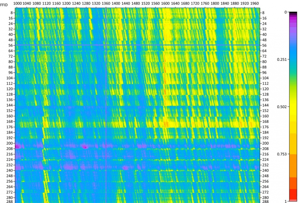 Control de calidad de datos: recopilaciones de disparos, recopilaciones de casi trazas, análisis de amplitud, análisis espectral, mapas de canales, pila bruta, etc.