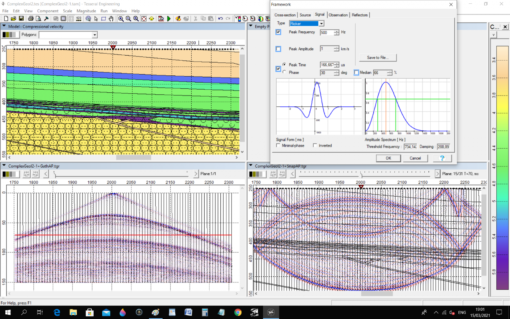 Al utilizar Tesseral Engineering en la etapa de interpretación, el usuario puede cargar la sección obtenida como resultado del procesamiento de datos reales, agregar propiedades físicas y objetivos (karsts, fallas, zonas de fractura, taliks, etc.) en ella, realizar modelos y comparar las colecciones sísmicas calculadas con las reales. El procesamiento posterior de las colecciones sintéticas permite determinar la fiabilidad de la interpretación y los límites de las capacidades del sistema de adquisición dado en una sección específica al resolver el problema geológico o geotécnico.